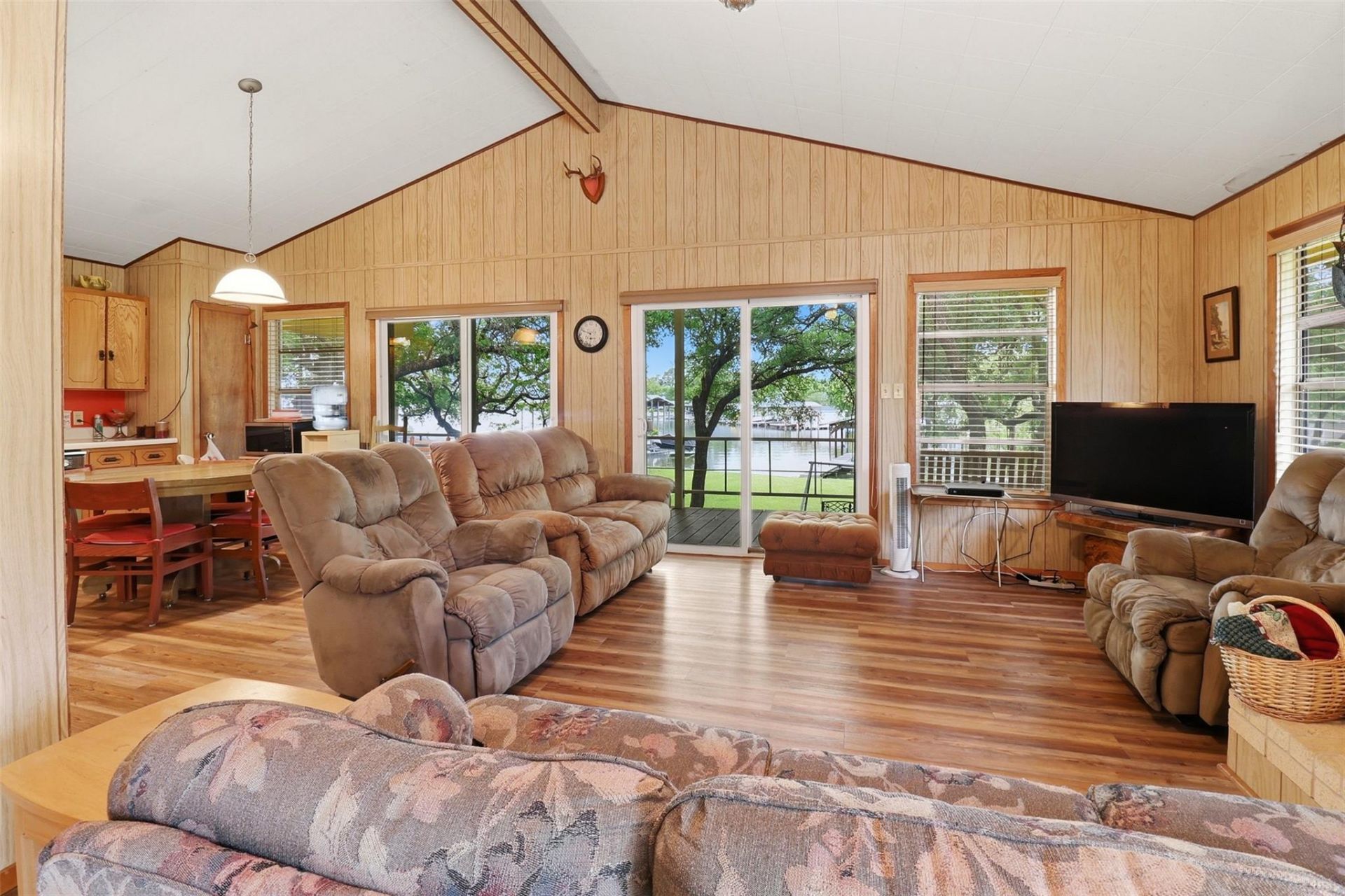 Just when you thought owning on the jewel of the Highland Lakes, Lake LBJ, was out of reach, here comes 1138 Hill Circle East. This rare opportunity offers over 50 feet of waterfront in a protected Open Cove?ideal for swimming, boating, and enjoying pass-thru level Lake LBJ living at an attainable price point. Originally built in 1970 and lovingly held by one family, this well-maintained lake cabin has served as a cherished vacation retreat and is now ready for its next chapter. Featuring 2 bedrooms and 1 bath, the home offers a simple, functional layout with comfortable living spaces and large windows that bring in natural light and peaceful lake views. Surrounded by mature trees, the property provides a shaded, relaxed lakeside setting, while the fully fenced yard offers privacy and flexibility for pets, guests, or future enhancements. At the waters edge, a private boat dock with electric lift is already in place?making it easy to get on the water and enjoy everything Lake LBJ has to offer from day one. Whether you're searching for an affordable waterfront getaway, a short-term rental investment opportunity, or a property to update or build on over time, this home delivers exceptional potential in a highly desirable location. Properties with usable water, existing dock infrastructure, and this level of accessibility are becoming increasingly difficult to find. Offered turn-key and fully furnished, recent improvements include a new roof (2022), updated flooring (2022), exterior paint (2022), window coverings (2023), and a new storage unit (2023)?with a riding mower included. A rare chance to secure true Lake LBJ waterfront living?ready to enjoy now, with upside for the future.