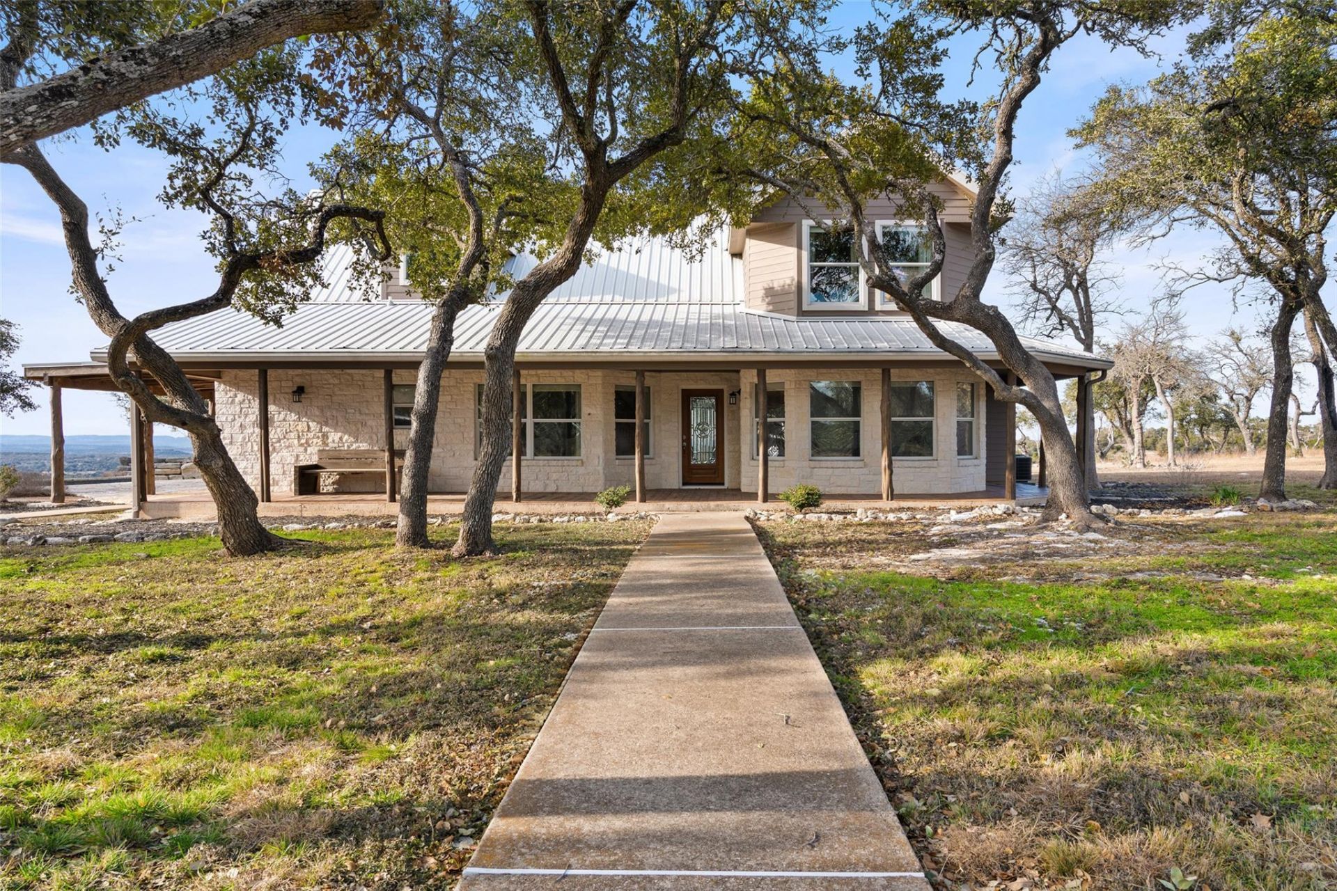 Transcendent Hill Country Views from this exceptionally private and gated 25+ acre Dripping Springs Estate in Blanco County. Comprised of an inviting 2600+ SF main home that captures the remarkable long-range vistas and rocked poolscape along with a fully appointed guest apartment attached to the three-car garage and 1800+/- SF insulated metal building complete with heated and cooled office space. This ranchette lives much larger than its 25 acre footprint in light of the elevated and relatively flat topography but remains easy to maintain. Rainwater harvesting system in place along with a well. Studded with grand post oak trees throughout and a serene habitat for whitetail and songbirds, the land is equally as stunning as the view. A high fenced garden sits behind the guest apartment and is ready to be planted. Efficiently located near Austin and San Antonio, just 15 minutes to local shops and restaurants. Rainwater catchment and well currently in place, outside of city limits, and lightly restricted. Pets negotiable.