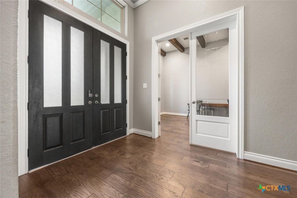 Hill Country elegance meets everyday comfort in this beautifully designed one-story home nestled on a 1 acre lot in the sought-after Vintage Oaks community. Boasting 3,435 sq. ft., this spacious 4-bedroom, 3.5-bathroom layout features soaring ceilings, an open-concept design, and an inviting living room lined with windows offering natural light and views to the beautiful back porch area. The gourmet kitchen is a chef's dream with custom cabinetry, granite countertops, stainless steel appliances, a warming oven, and an oversized butler's pantry. The private primary suite offers a spa-like bath with a walk-in shower and garden tub. Split layout offers two bedrooms with jack n jill set up and another full in-law suite opposite the master suite. Home office needed? This one has that ready to go as well as a media room. Enjoy the Texas outdoors lifestyle on the expansive covered patio complete gorgeous deck area with luxury swim spa. Additionally offering an oversized 3-car garage includes a utility sink for added convenience. Just a short stroll to the resort-style pool and amenities of Vintage Oaks-this is the home you've been waiting for. showings begin Sunday 1/11.