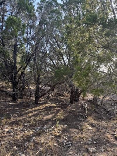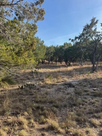 Good lot sloping towards the fairway of the Highland Lakes course (currently inoperative) Small oaks but mostly cedar.
