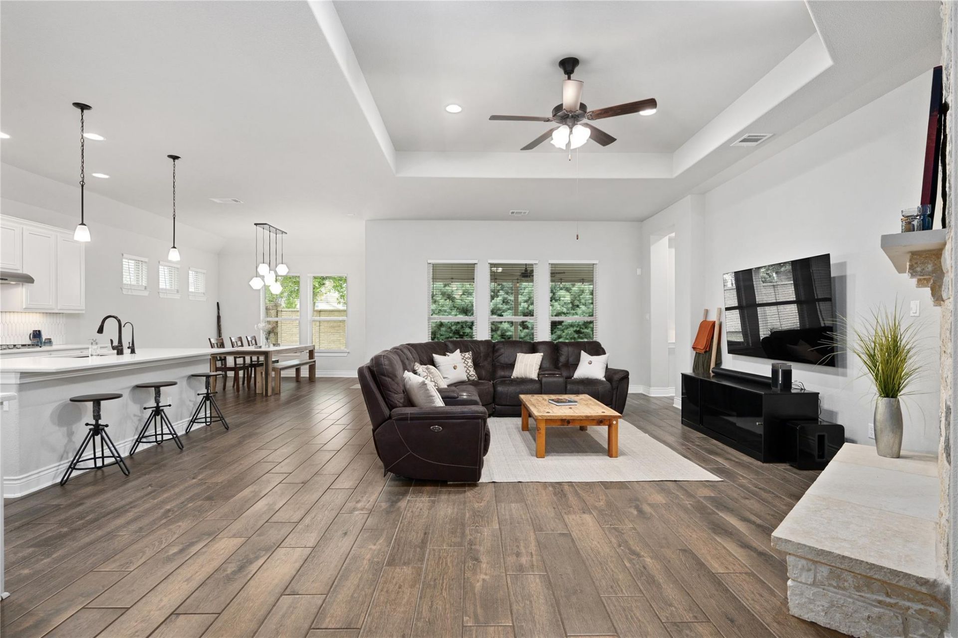Open House on Sat, 4/18, 2-4pm & Sun, 4/19, 1-3pm. What does upgrade actually looks like in a home? It looks like unlocking your front door from your phone because your hands are full of groceries. It looks like the garage opening before you pull in. It looks like the thermostat already knowing it's time to cool down before you ask. This 2,784 sq ft, single-story home (built 2020) has 4 bedrooms, including a flexible fourth space currently staged as a teen suite but equally at home as a gameroom or second living area, with a half bath right outside the door. The formal dining room is set up as a home office because the kitchen dining area comfortably fits an 8-person table and honestly, who needs two dining rooms anyway. Gas cooktop, built-in ovens, quartz island, gas fireplace, covered back porch with string lights. You get the picture. Here's something you won't find in most listings: this home has only one shared fence neighbor. An HOA walking trail runs along the side and across the back. Privacy without the acreage bill.The landscaping out front turns heads. The current owners put real thought and money into it, and it shows compared to everything else on the street. Speaking of things you won't find in most listings right now: this home is served by Manville Water, not the City of Pflugerville. If you've been following local news, you know exactly why that matters. 12 integrated smart features in this Lakeside at Blackhawk home, hardwired EV charging (11.5kW, 30+ miles per hour for most EVs), a 72 BigAss Fan that earns its name, and an EcoBee thermostat that learns your schedule so you don't have to think about it. Mott Elementary and Cele Middle School are rated 8/10. Pool, gym, golf, trails: $40/month HOA.Some houses are a place to sleep. This one is a place to live.